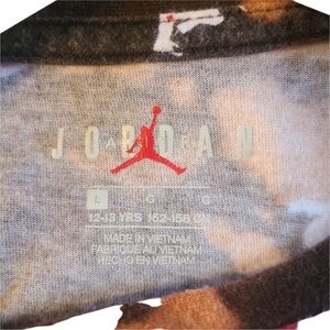 Jordan Nike Air, black and brown reverse bleach tye Dye, short-sleeved, crew-neck tee shirt. Pull-over, White Nike logo throughout the shirt, super comfortable, lightweight and in great condition size youth Large