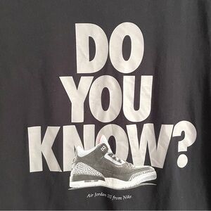 Black w/ Gray "DO YOU KNOW?" silkscreen w/ Air Jordan 3s.