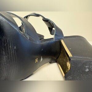 Jorge Bischoff Block heeled black leather gold accent sandals women's size 36