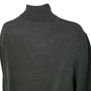 This Jos. A. Bank sweater in a vibrant green shade showcases a sleek zip-up style with a mock neck collar. Made from a soft knit fabric, it ensures a comfortable fit with ribbed cuffs and a timeless, solid color. Perfect for casual or business casual occasions, it pairs seamlessly with a collared shirt for a refined appearance.