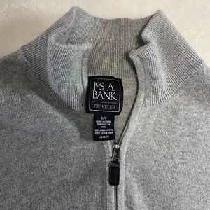 Jos A Bank Sweater Gray Traveler Pima Cotton 1/4 Zip Mock Neck Men’s Small