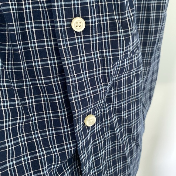 DESCRIPTION: A Classic Cotton Button Down. Front chest pocket. Long sleeves. Blue Plaid.