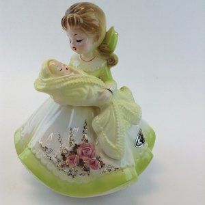 Josef Originals Mother and Baby Rotating Music Box Figurine Plays Brahms Lullaby