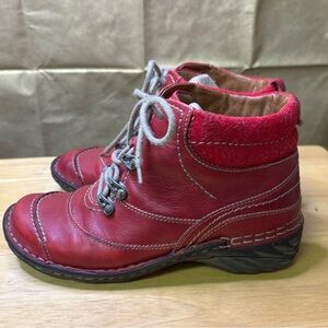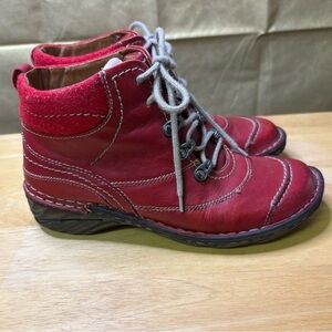 Josef Siebel Women’s EU 37 Red Leather Ankle Lace Up Boots High Top Sneaker Fun