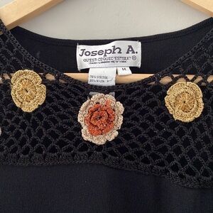 Joseph A. Vintage Black Floral Crochet Scoop Neck Sleeveless Tank Top