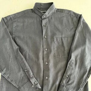 Joseph & Feiss Classic Fit Lg Slv Mandarin Collar Button Down Shirt Black Sz M