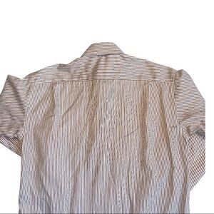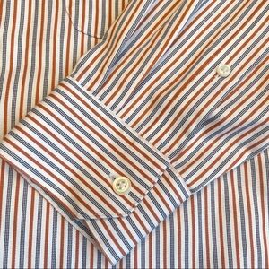 Joseph & Feiss Striped Dress Shirt Cream Shirt with Orange and Black Stripes Long Sleeved Button Business Career Professional