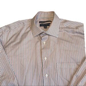 Joseph & Feiss Large Orange Black Striped Long Sleeved Button Down Dress Shirt
