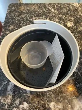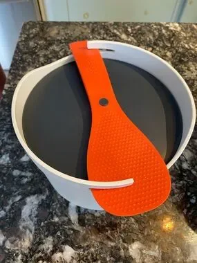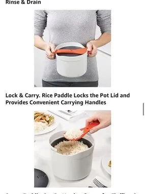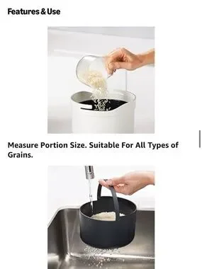 This specially designed microwave rice cooker set comprises of a 2-litre (2.1 qt) cooking pot, colander, measuring cup and multi-purpose rice paddle