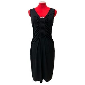 Joseph RIBKOFF Sleeveless Black Pleated and Rusched Midi Dress US Sz 10