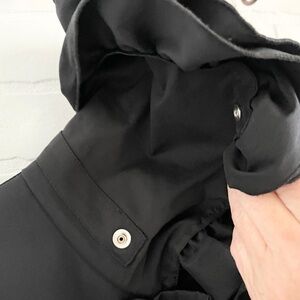 This insanely good and well structured women's trench coat features ruffled collar, hem and wrist, belted, full zip closure, two gorgeous pockets, a high low cut. The coat is made of lustrous waterproof fabric. The sleeves are long. This gem is pretty versatile can be worn as a trench or as a dress.