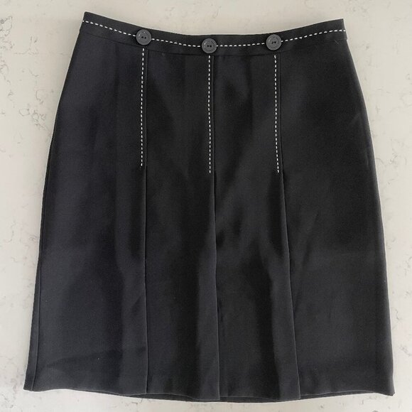 Joseph Ribkoff 3 Button Lined Poly Panel Skirt w Pick Stitching Black White Sz 8