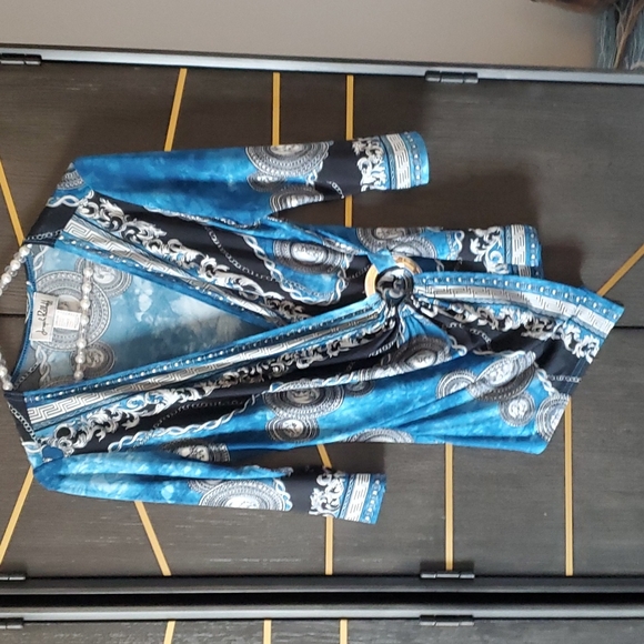 Beautiful blue top with waist detail.....add your pants and u have a smiling outfit