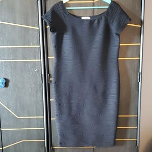 This elegant black textured dress is perfect for any occasion. Its sleek design and comfortable fit make it a must-have in your wardrobe. streach material p2p 21 length 37