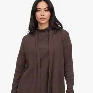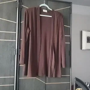 Stylish brown open front cardigan. Perfect for layering.
