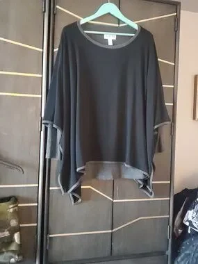 This is a beautiful top looks like 2 pieces but its one black cape over gray top