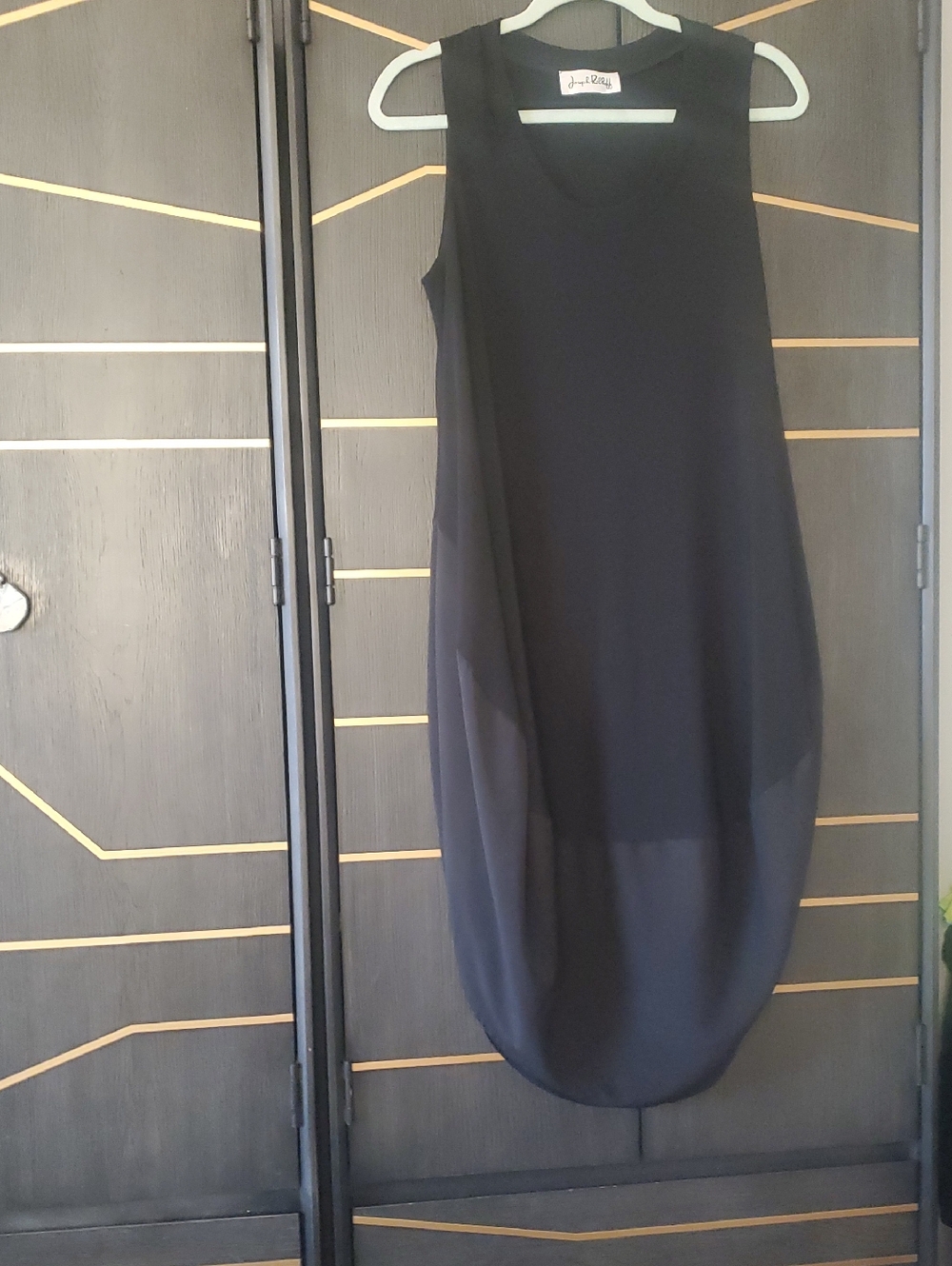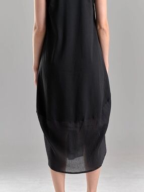 Sleeveless midi dress with a rounded bubble hem. Clean scoop neckline and minimalist silhouette. Lightweight, drapey fabric for fluid movement. Simple and modern look for versatile styling.ballon dress