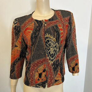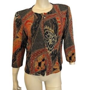Joseph Ribkoff Abstract Sparkle Jacket Top Sz M Zip Stretch Colorblock