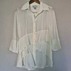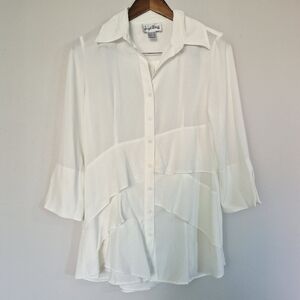 Joseph Ribkoff Asymmetrical Off White Ruffle Tunic Blouse Size 6