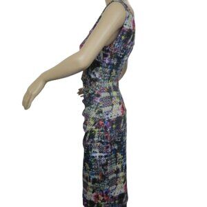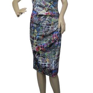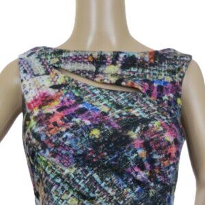 This knee-length dress by Joseph Ribkoff is a vibrant statement piece, perfect for adding a splash of color to any occasion. The dress features a bold, colorful design that captures attention and radiates energy. Its sleeveless cut highlights your shoulders and arms, while the side ruching creates a flattering silhouette, enhancing your natural curves. A stylish slit at the top front adds a touch of sophistication and allure. Ideal for both daytime events and evening outings, this dress combines style and comfort, making it a standout addition to your wardrobe.