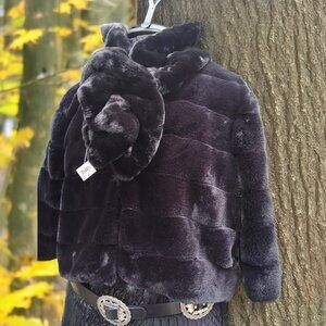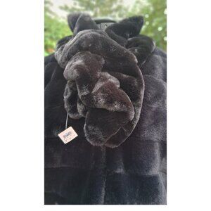 Black Faux fur 3/4 length sleeve fur jacket and added a scarf with tag Both new never worn with Tag Jacket has 2 eye closure not pockets Super soft
