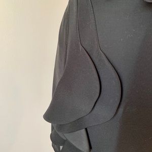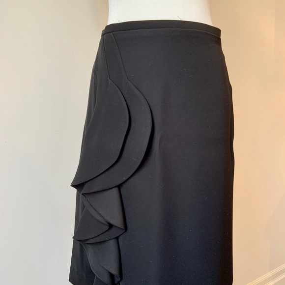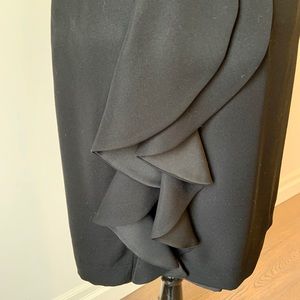 Black pencil skirt with ruffle detail down one side. Fully lined. 100% Polyester. Excellent condition. Smoke and Covid free home.
