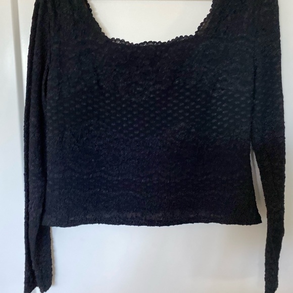 Joseph Ribkoff black fitted lacy stretch evening top size 14 Like new .