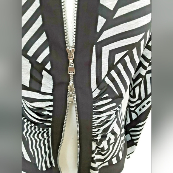 Stylish geometric pattern. Long sleeves. double Zipper closure. Perfect for layering.