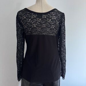 Joseph Ribkoff - Black and Grey Asymmetrical Long Sleeves Shirt - Lace Sleeves - V-Neck - No size and material tag - Excellent pre-owned condition