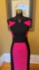 Chic dress with bold black and pink design. Perfect for stylish occasions.
