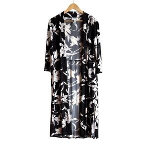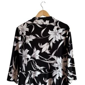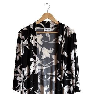 Joseph Ribkoff Black and White Floral LDS Cover Up Size 10 Kimono Cardigan