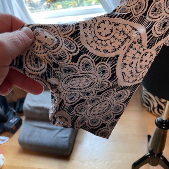 Elegant lace top with intricate floral patterns. Long sleeves. Perfect for a chic look.