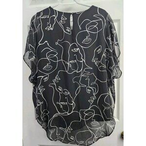 Joseph Ribkoff Black/Vanilla Faces Pattern Cape Style Over Camisole Blouse 14