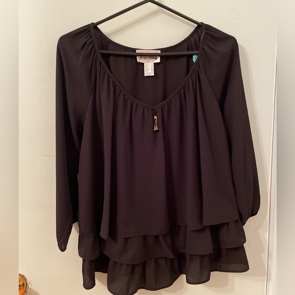 Joseph Ribkoff Blouse Tiered Ruffle Hem Black size 8