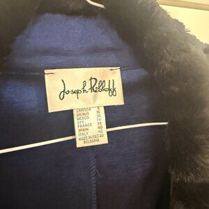 Joseph Ribkoff Blue Long Coat with Black Fur Collar - Sophisticated Women's Oute