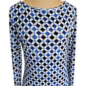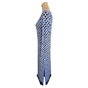 Joseph Ribkoff Blue White Maxi Dress w/ Diamond Design Sz 8