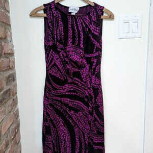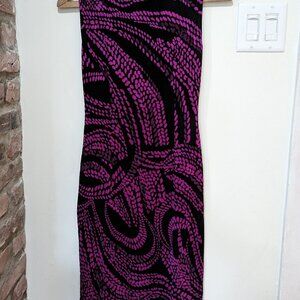 Beautiful jersey bodycon midi dress. Black, with abstract shiny purple print. Very comfortable and perfect for spring.
