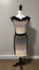 New condition. Fitted sheath dress in a silky knit with jacquard front in graduating speckled print. Featuring capped sleeves and Bateau neckline with metallic cut out. Knee length hem with solid panel sides, back and back zipper. 74% Polyamide, 18% Polyester, 8% Spandex.
