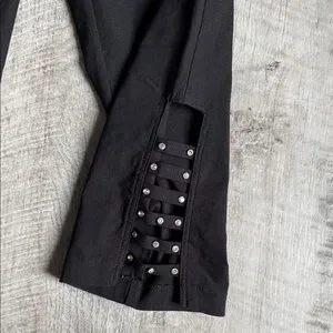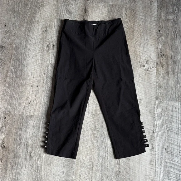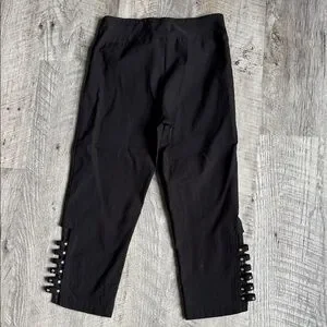 Super comfy spandex capris with jewelled detailing at the cuff. One small flaw bottom right leg as pictured