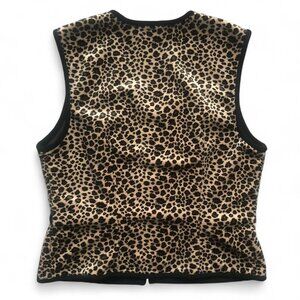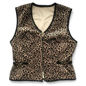 •vintage 90s JOSEPH RIBKOFF soft quilted fuzzy furry leopard cheetah print zip-up vest jacket w/gold chain side detailing 🖤🤎
