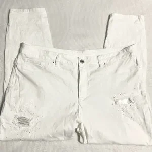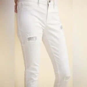 Chic cropped jeans with distressed details. Perfect for casual outings.