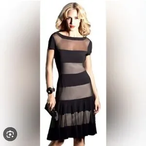 Elegant black dress with sheer striped design. Perfect for evening wear. Perfect condition