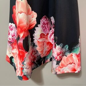 Off the shoulder fit and flair dress with an A-line floral print, woven bottom, and pockets on the sides.