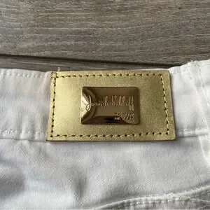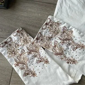 White with gold embroidery on lower leg. Designed to flatter and sculpt your figure.