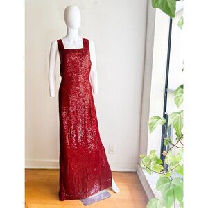 Joseph Ribkoff Gala Red Dequion Low Plunge Open Back Bia Cut Gown M