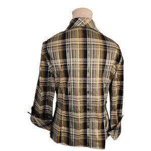 Joseph Ribkoff Gold Black Plaid Collared Top Sz 14
