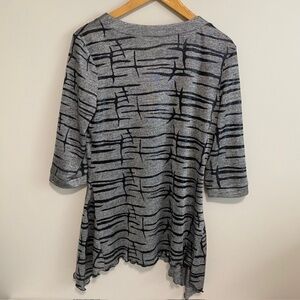 Joseph Ribkoff Gray Black Graphic Patterns Asymmetrical 3/4 Sleeve Top Size 10