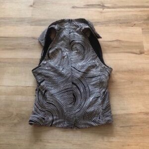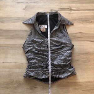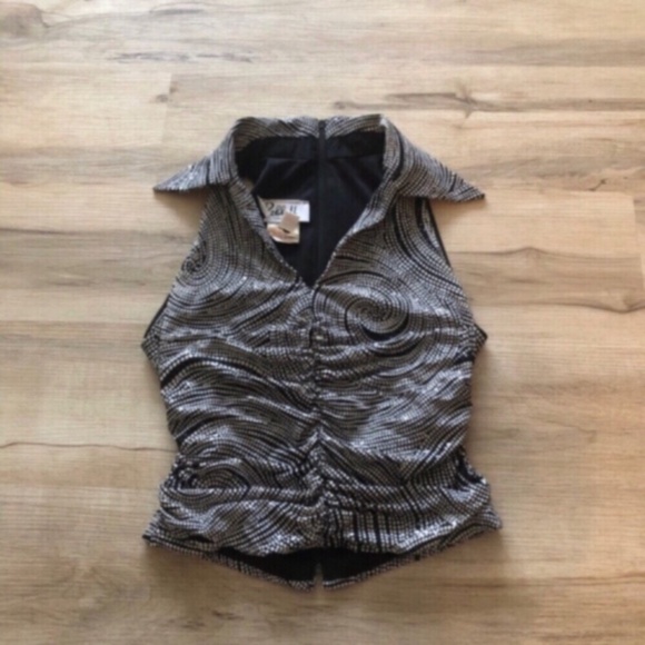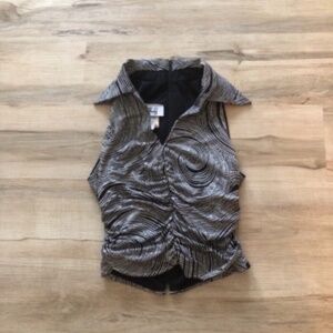 This stylish Joseph Ribkoff crop top in a sleek gray color features a notched collar and a button-down design. The ruched detailing adds a touch of elegance, making it a versatile piece for any occasion.