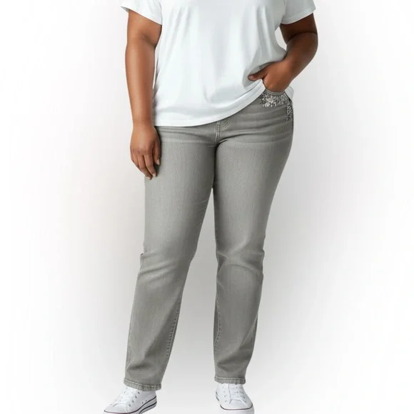 Stylish gray pants by Joseph Ribkoff. Comfortable fit. Perfect for casual wear. Not true to size. My best guess is 16-18.