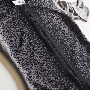 Joseph Ribkoff jacket / coat with black and grey animal print design. Lightweight, long 3/4" sleeve, lined, double zip front closure. Pre-owned, gently used condition. Style Number, 22442. Please refer to photos.